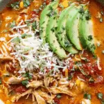 - Garnish and Serve: Ladle the soup into bowls and garnish with fresh shredded cilantro, shredded cheese, diced avocado, and optionally crushed tortilla chips for extra texture and flavor. Serve hot and enjoy!