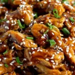 Return the shredded chicken to the thickened teriyaki sauce and toss everything together until the chicken is evenly coated. Finally, sprinkle over the sesame seeds and sliced green onions for that classic finishing touch that makes the dish pop.
