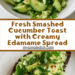 A fresh and vibrant smashed cucumber toast topped with a creamy artichoke edamame spread, perfect for a light and healthy snack or appetizer. This recipe combines crunchy cucumbers with a flavorful, herbaceous spread packed with protein and Mediterranean flavors.