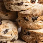 Delight in these homemade Sourdough Discard Cinnamon Raisin English Muffins, a perfect mix of tangy sourdough flavor, warm cinnamon spice, and sweet raisins. These English muffins are cooked on the stovetop for a tender texture with a slight crunch, ideal for toasting and topping with butter or jam.