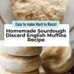 Delicious and lightly crisp Sourdough Discard English Muffins made using leftover sourdough starter. These muffins have a tender crumb with the iconic nooks and crannies perfect for holding melted butter and jam. Made with a combination of bread flour, sourdough discard, and semolina flour for dusting, they are cooked on a skillet and finished in the oven for a perfect texture.