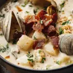 This classic New England Creamy Clam Chowder recipe delivers a rich and comforting soup made from fresh or canned clams, smoky bacon, tender potatoes, and a creamy broth seasoned with fresh herbs. Ideal for cozy dinners, this chowder balances savory flavors with a smooth texture and is served best with crusty bread.