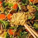 This vibrant vegan Teriyaki Noodles recipe features al dente ramen noodles tossed with crisp-tender broccoli, shiitake mushrooms, carrots, and green onions, all coated in a savory homemade teriyaki sauce. Ready in just 30 minutes, it’s a flavorful, plant-based meal perfect for a quick lunch or dinner, complemented with optional toppings like sesame seeds, mung bean sprouts, and fresh herbs for added texture and flavor.